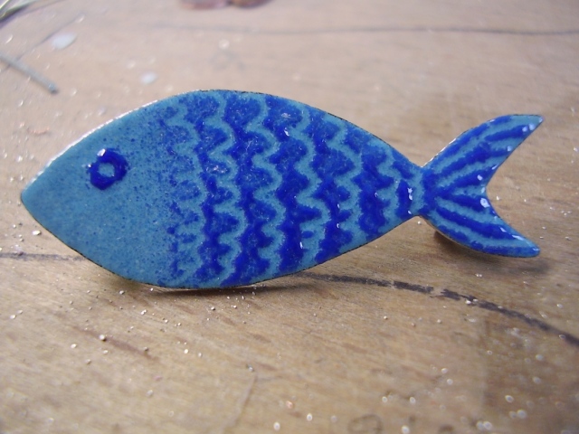 Brooch, enamel on copper. In the color you choose. With scales or stripes or dots or other.