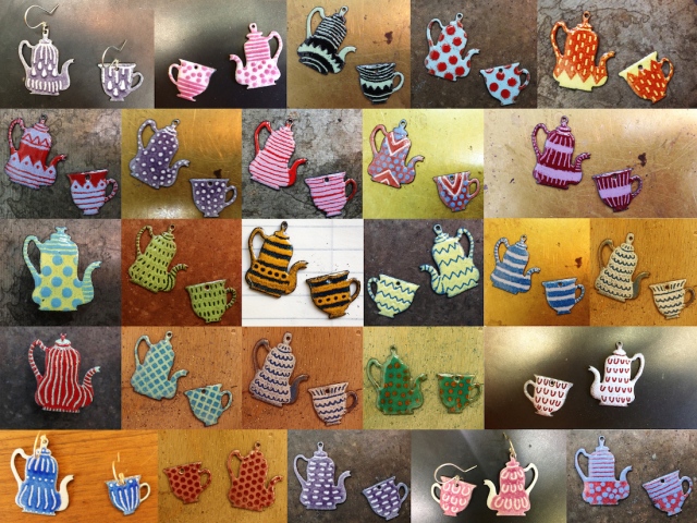 Enamel on copper with silver hooks. Many designs, many coloraturas combinations.